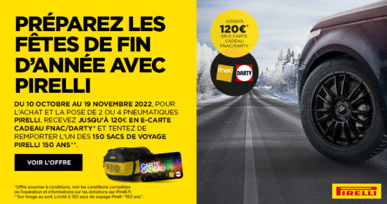 Du 09 Octobre au 18 Novembre 2023, pour l’achat et la pose de deux ou quatre pneumatiques Pirelli, recevez jusqu’à […]