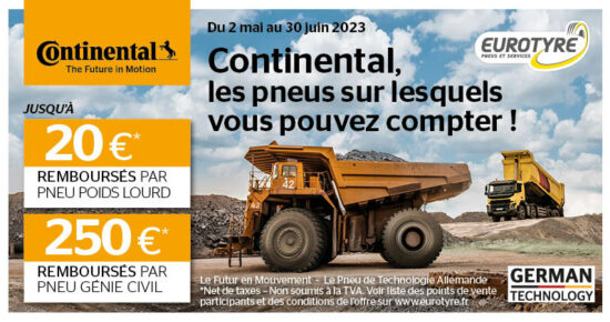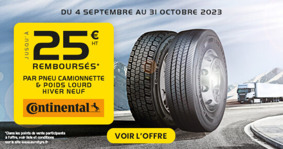 Du 1er septembre au 31 octobre 2022 pour l’achat de pneumatiques Poids Lourd neufs Hiver Continental, bénéficiez d’un remboursement jusqu’à […]